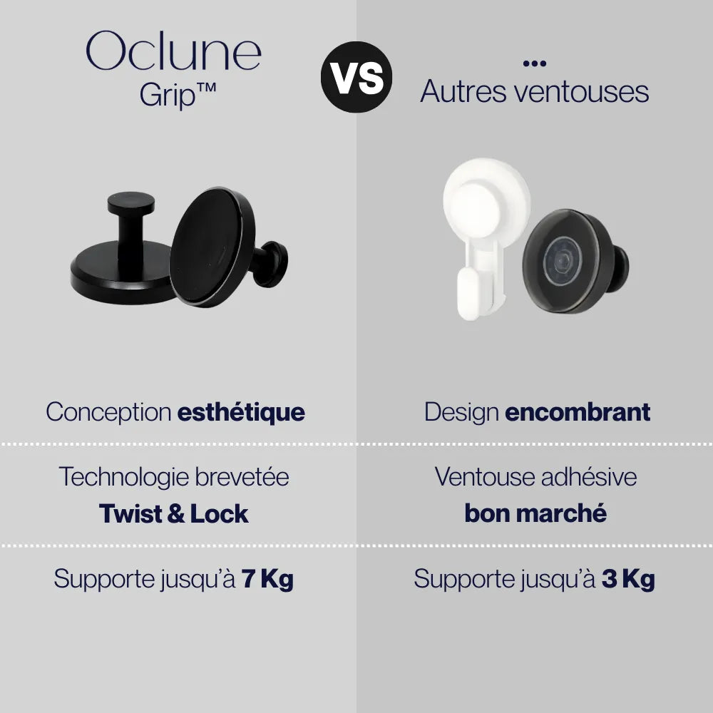 Nos ventouses brevetées fonctionnent grâce à un système d'aspiration rotative de l'air. Ce procédé crée une étanchéité parfaite entre la base en caoutchouc noir et la surface de fixation. Il en résulte une résistance à l'arrachement remarquable et, associé à un design élégant, un produit indispensable !