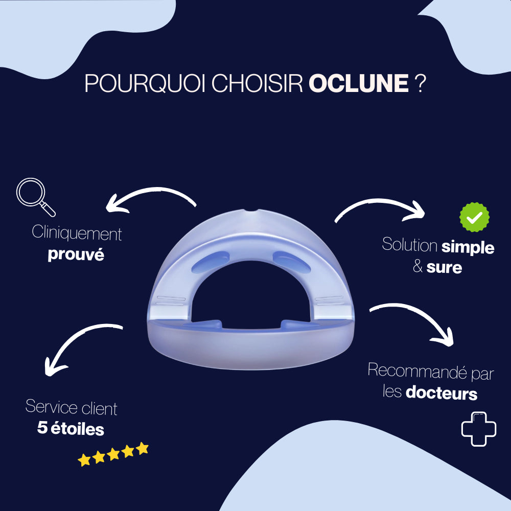 L’embout Oclune est efficace pour la plupart des personnes souffrant de ronflements dus à une obstruction des voies respiratoires. Cependant, il peut ne pas convenir aux personnes atteintes d’apnée du sommeil sévère ou à celles qui portent des dentiers.