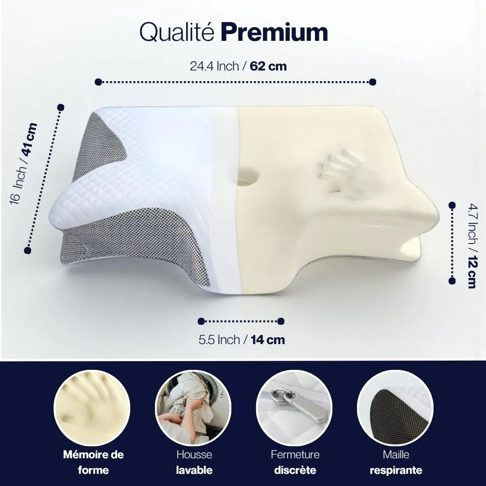 Oui, il est spécialement conçu pour soulager les douleurs cervicales et il peut aussi aider à diminuer les migraines : le maintien ergonomique et la mousse à mémoire de forme favorisent un alignement naturel des cervicales, ce qui limite les tensions et améliore le confort. De nombreux utilisateurs rapportent une nette réduction de leurs douleurs et maux de tête après quelques nuits d’utilisation.